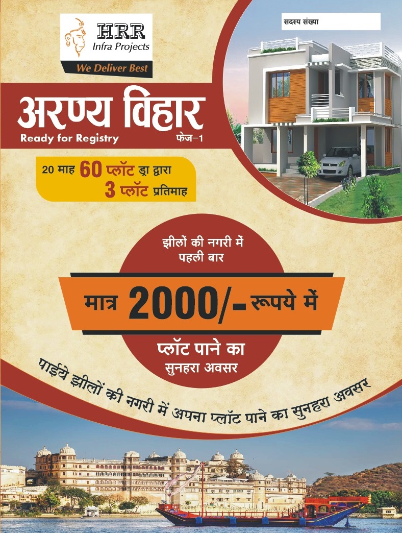15. अरण्य विहार, फेज-1 आवासीय भूखण्ड योजना में पंजीकृत सदस्यों को द्वा समाप्ती के बाद प्लॉट ही लेना अनिवार्य होगा। 1 लाख 31 हजार रु. में प्लॉट उपलब्ध है। किश्तों में जमा चालिस हजार प्लॉट की कीमत में समायोजित की जाएगी। शेप भुगतान 22 आसान किश्तों (5000x22) में या एक मुश्त रु. 90,000 (नच्चे हजार रूपये जमा करवाने की सुविधा है। यदि 20 माह बाद किसी सदस्य का दा नहीं खुलता है तो इस स्थिति में सदस्य को प्लॉट लेना अनिवार्य होगा। प्लॉट नहीं लेने की स्थिति में सदस्य द्वारा जमा कि मई राशि को वापस सदस्य को नहीं लौटाई जायेगी। इसकी सहमति सदस्य द्वारा हस्ताक्षर कर दी गई है।